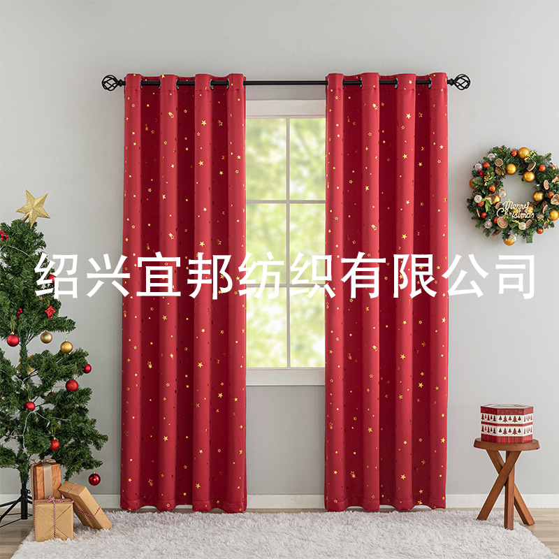 ホットスタンピング完全遮光カーテンホリデーデコレーション厚みのあるリビングルームベッドルームサンシェードカーテン完成品