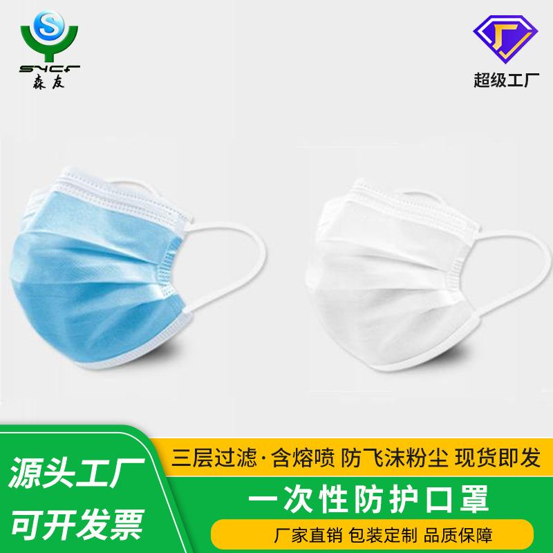 南通森友使い捨て三層不織布マスクはメルトブローン布通気白色青色防塵防護マスクを含む