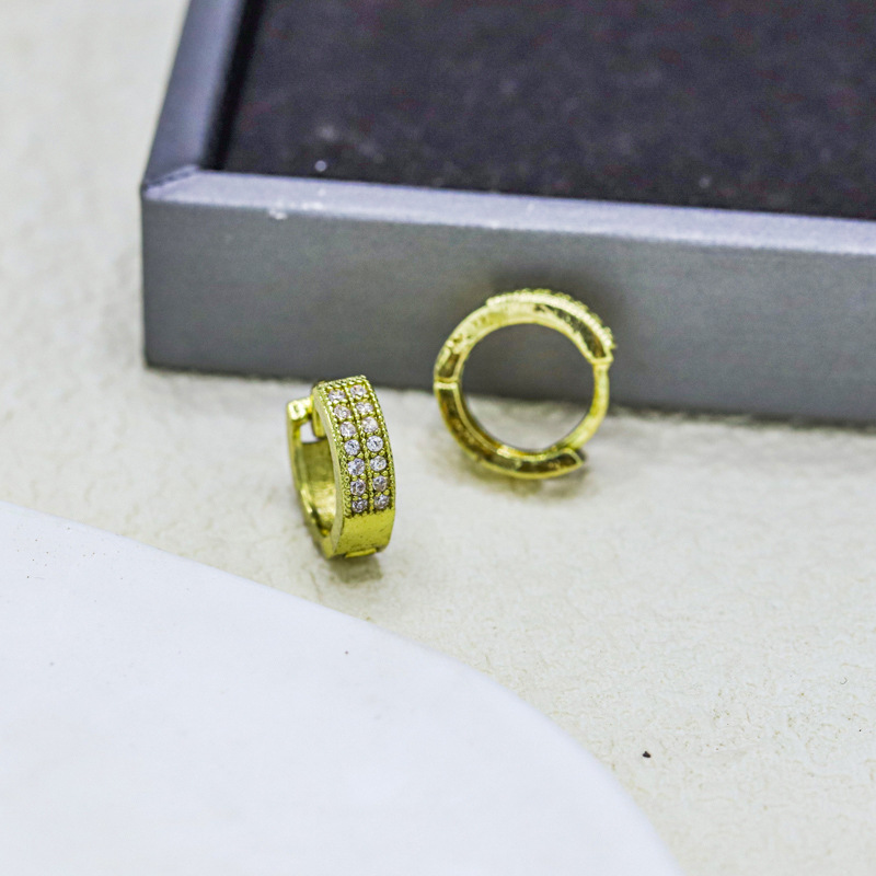 対外貿易クロスボーダーメッキ黄金色リングイヤリング女性高級感小衆耳飾りファッションレトロなジルコンイヤリングアクセサリー