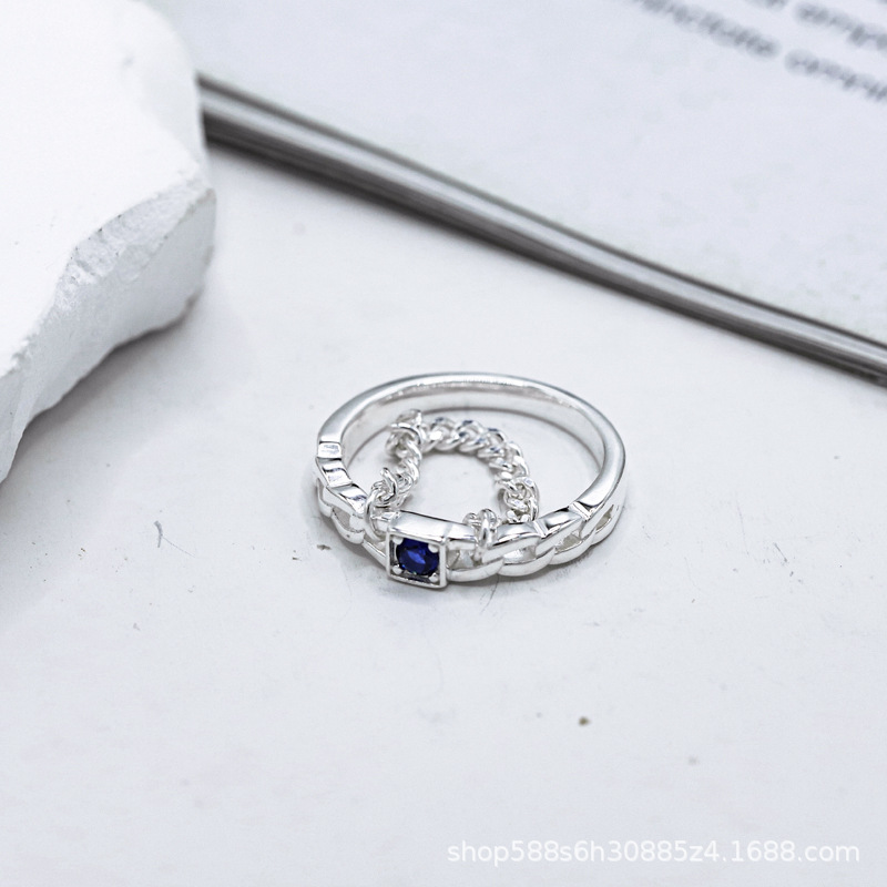 対外貿易クロスボーダーS925銀欧米風高級感のある豪華なサファイアリングの女性insアマゾンアクセサリー