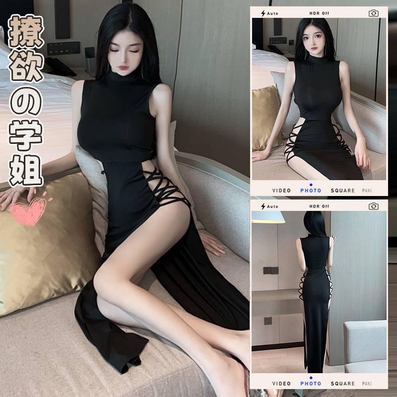 Amazonの新しいセクシーな下着、デスウォーター、セクシーな学生サイドレースアップハイスリットワンピース隠しボタンオープンセット