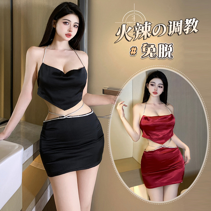 Amazon セクシーなホットガール タイトフィット スリム ヒップ ショート スカート セクシー ランジェリー オープンバック ストラップ ナイトクラブ 2030