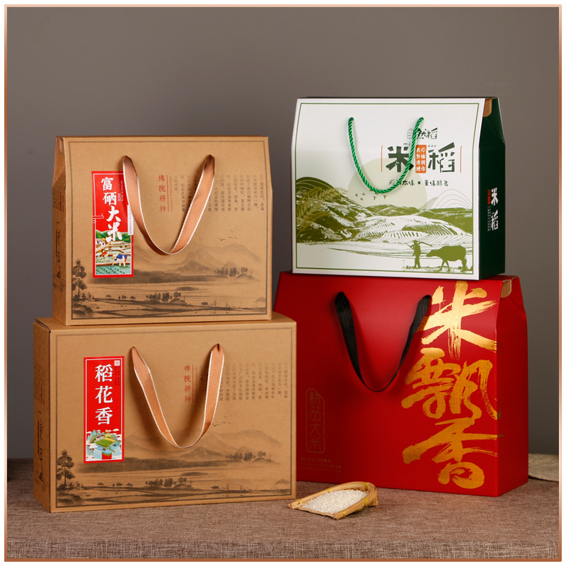 ギフトボックスは米の逸品の包装箱をカスタマイズして、手提げ袋をひっくり返します。
