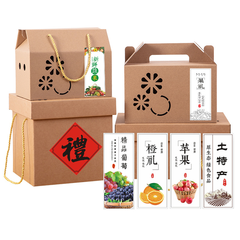 現品のクラフト紙の透かし彫りの果物の箱の海鮮の包装箱の手提げのリンゴの箱の柚子のお土産の包装の贈り物箱