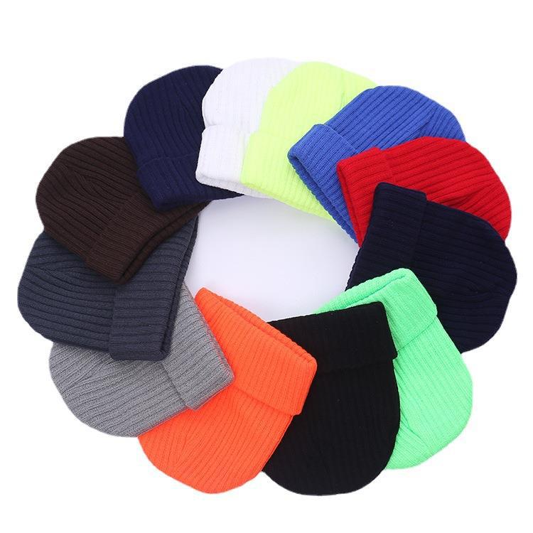 2023新型ins潮人アクリル毛糸帽巻き縁純色ニット帽屋外スキー帽光板冷帽