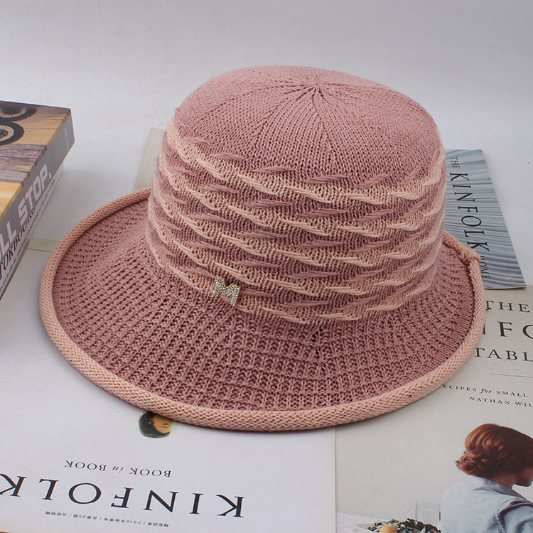 夏の帽子の女性のニットの生地の韓国版のファッションの巻きは盆栽の帽子の純色に沿って花の女性の帽子の日よけの帽子の夏の帽子を持ちます。