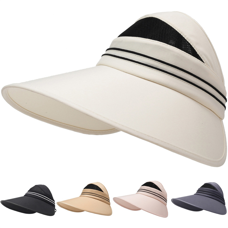 クロスボーダーの新しい春夏の大きなつばの日よけ帽子、女性用日焼け止め帽子、女性用の薄いファッショナブルな盆地帽子、日よけニット帽子