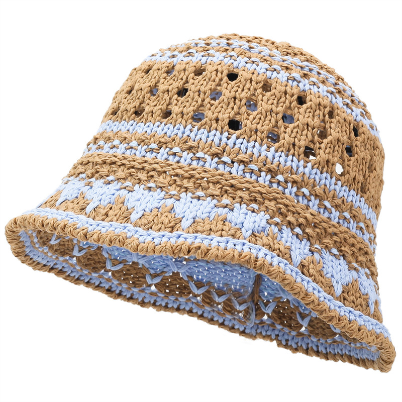 クロスボーダーカラーブロックフックウーブンバケットハットレディースドーム型多用途顔見せ小さな夏中空ニッチレトロフィッシャーマンハットトレンディ