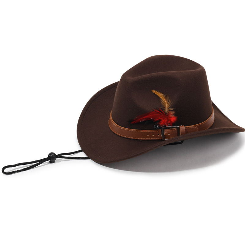 国境を越えたアマゾンのベストセラー カウボーイハット ウエスタン紳士帽子 レトロウエスタンカウボーイフェザーベルトサンハット