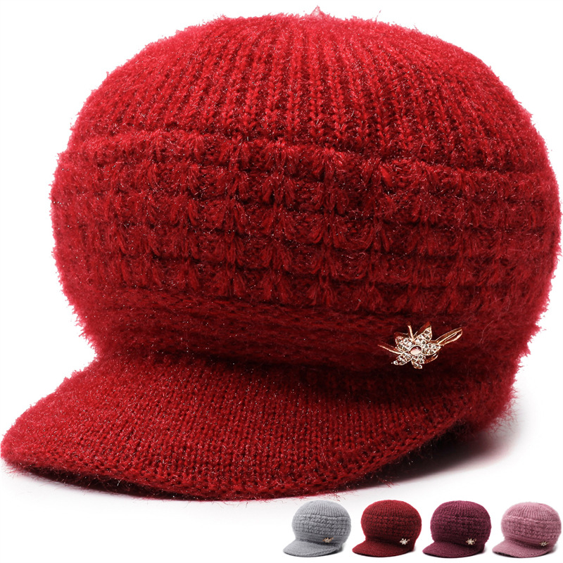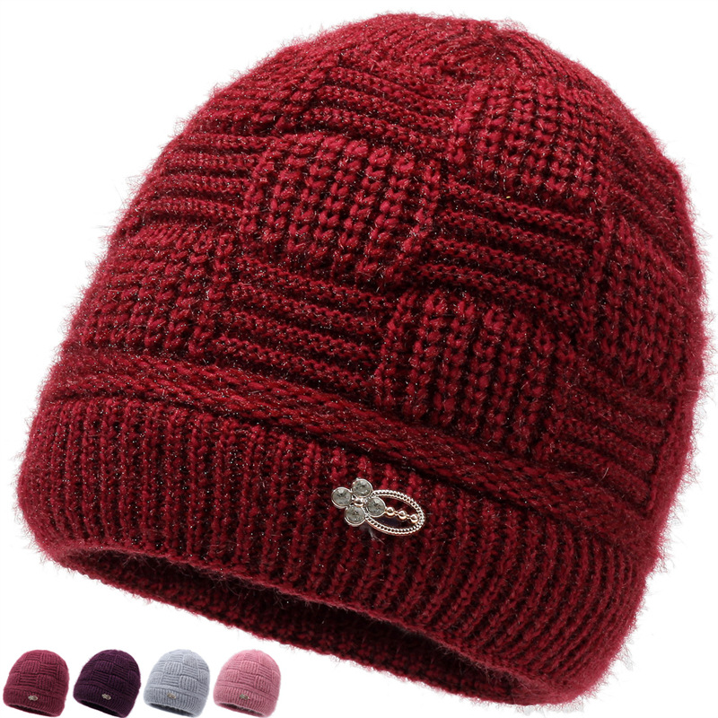 外国貿易の卸売ファッションのおばあさんのニットの帽子の冬の新型のベルベットの厚い保温の帽子のお母さんの毛糸の帽子
