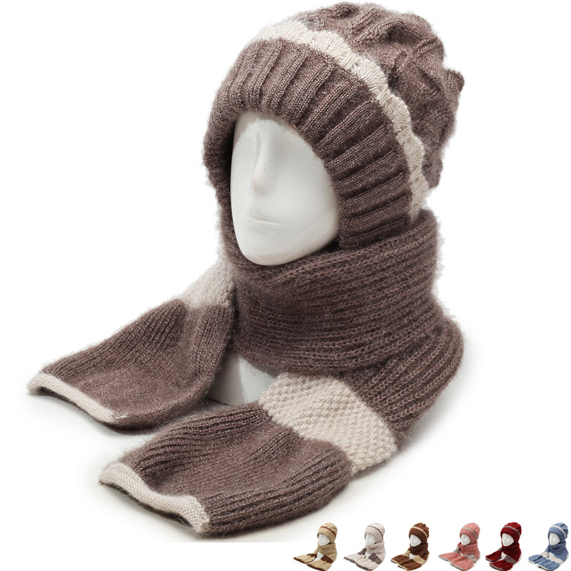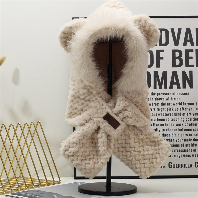 新型保温帽子マフラー一体ベルベット厚手耳保護首防寒保温女性ニット帽毛糸帽