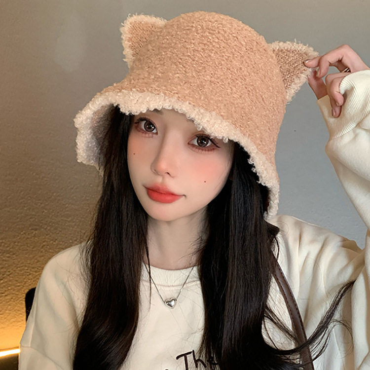 新型のぬいぐるみの熊の帽子は秋冬の保温の耳のかわいい雷鋒の帽子の純色の毛のふわふわしている冬の女性の帽子を厚くします。