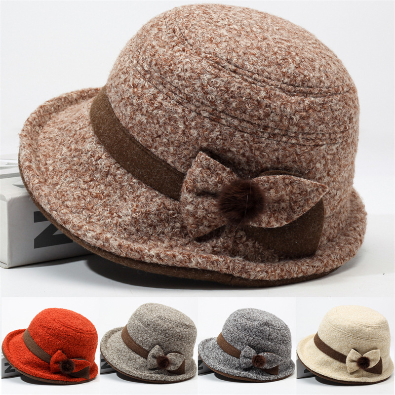 秋冬の女性の帽子の新型のニットの蝶結びの盆の帽子の屋外の保温のファッションは顔の小さい巻きの辺の漁師の帽子の潮流を現します。