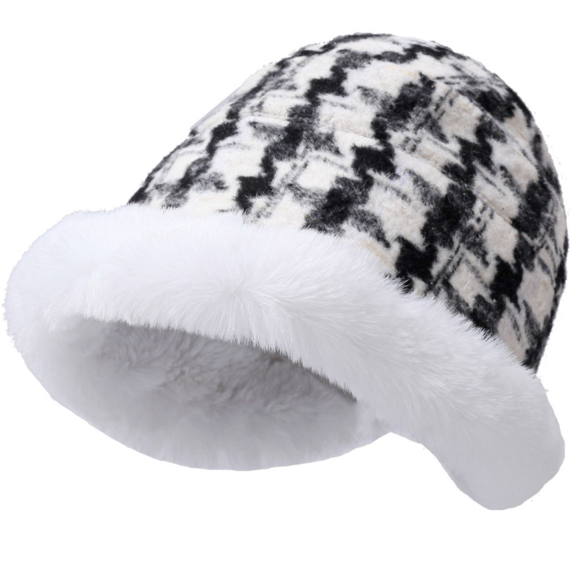 越境冬の防寒帽の子供とベルベットのネットの網盤格の漁師の帽子のぬいぐるみの帽子の保温は耳のバケツの帽子を保護します。