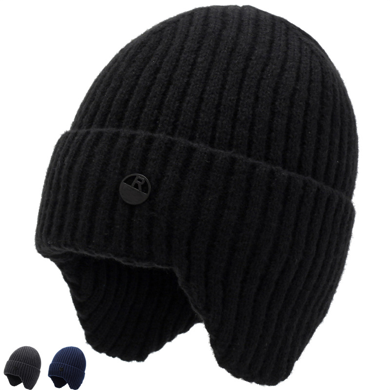 新型秋冬毛糸帽男性韓国版ニット帽屋外ベルベット厚手耳保護スキー帽毛糸帽ジャケット男性