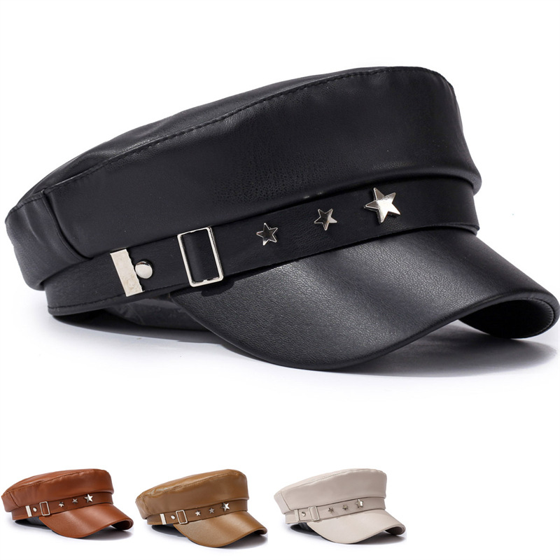 韓国版ファッション百合平頂帽pu皮英倫風ベレー帽の頭の周りに顔を見せます。