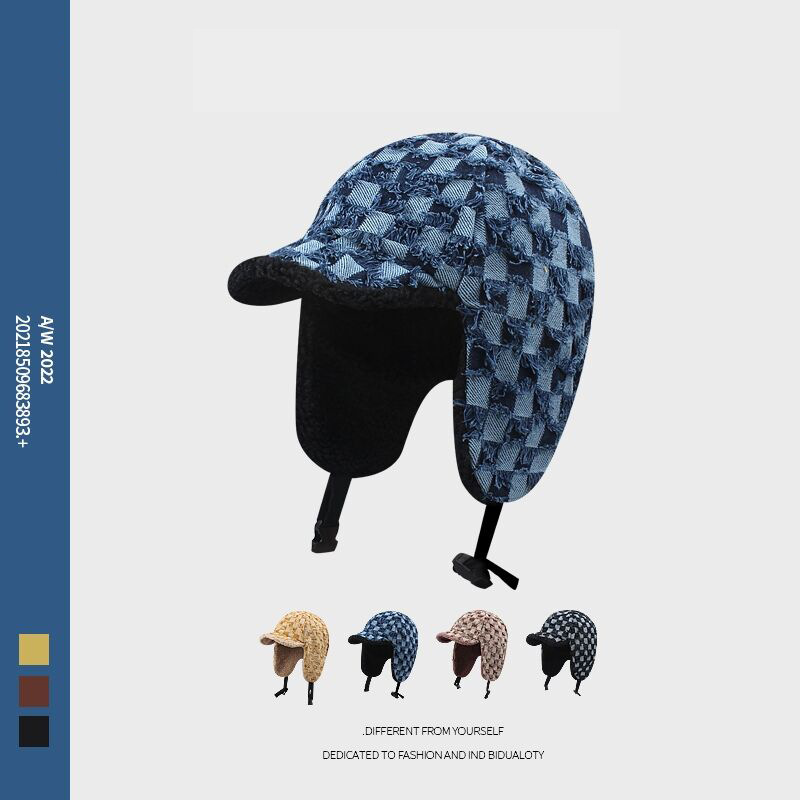 秋冬のプリントの格の韓国版のファッションのパイロットの雷鋒の帽子はベルベットをつけて毛をひっくり返して保温します。