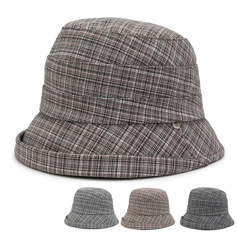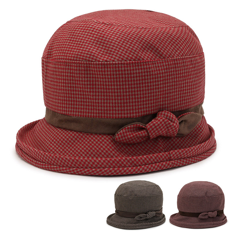 春秋の女性の帽子の韓国版のファッションの格子の巻きは定型の盆の帽子の巻きに沿って優雅なファッションの帽子のドームの帽子の布の帽子に沿っています。