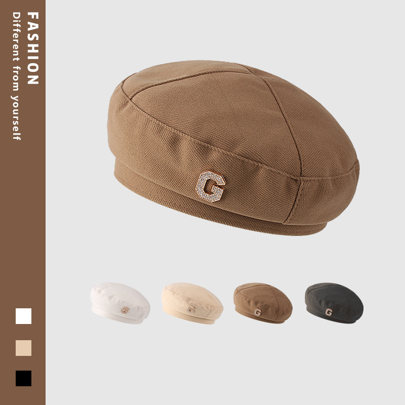 ネットの赤いタイプの韓国版の金属の標準gのアルファベットのベレーの帽子の女性の春秋の金の復古のファッションの蕾の画家の帽子の八角の帽子