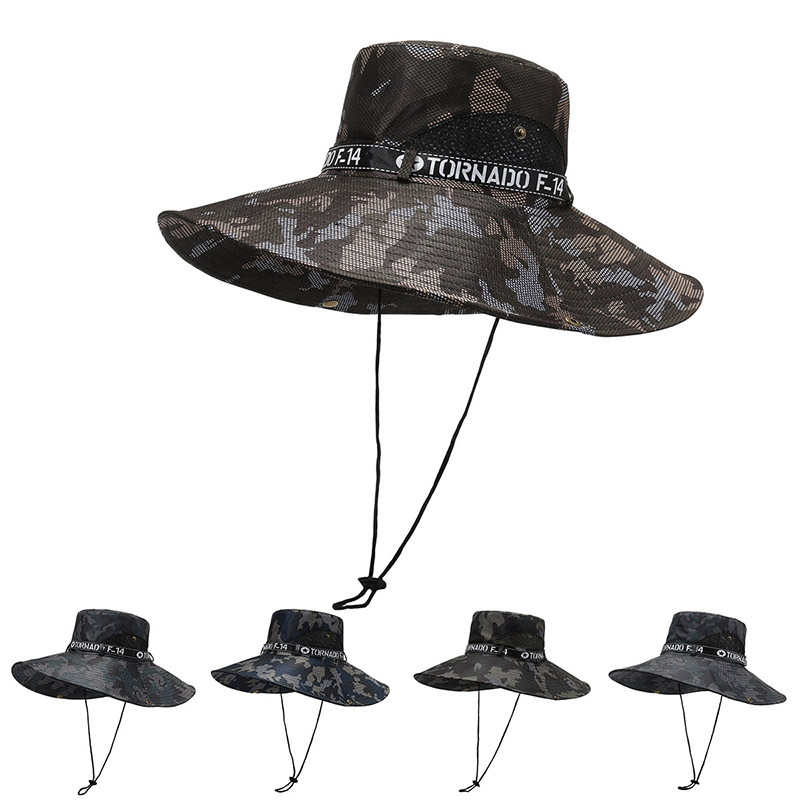 新商品の大縁男性漁師帽プリント夏の通気釣り登山大沿帽日焼け止め日よけ帽子卸売り