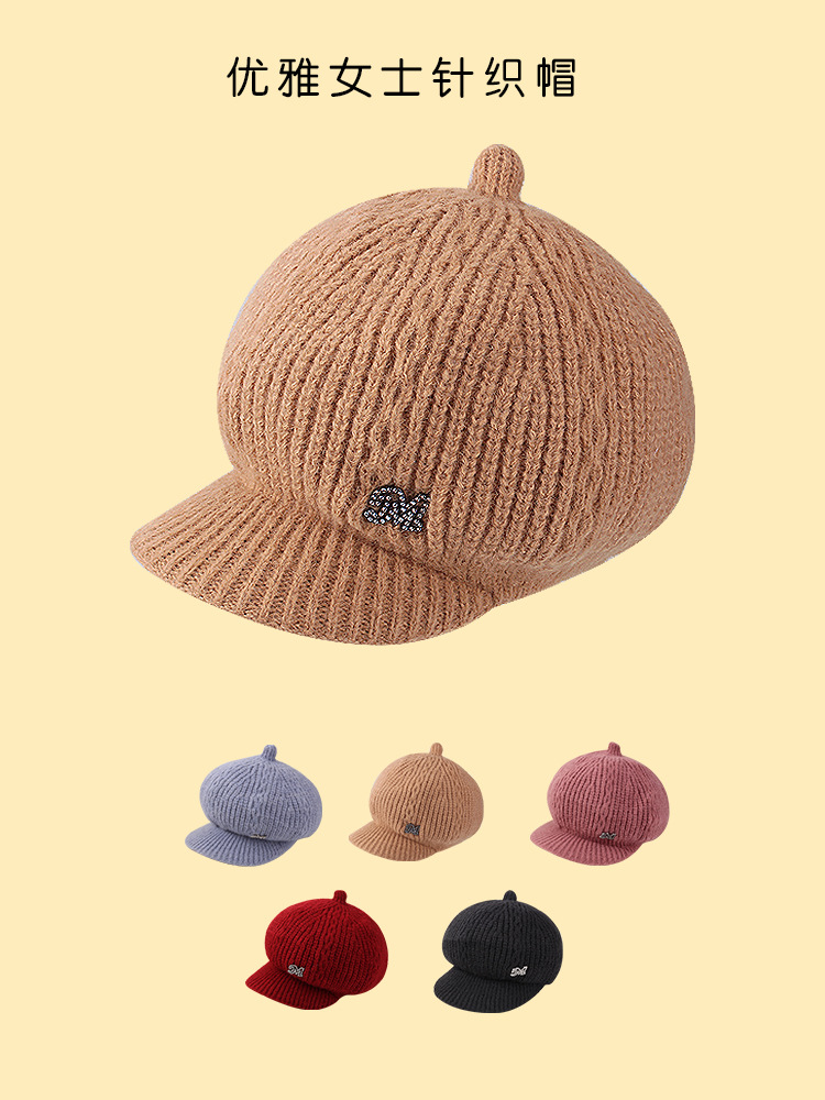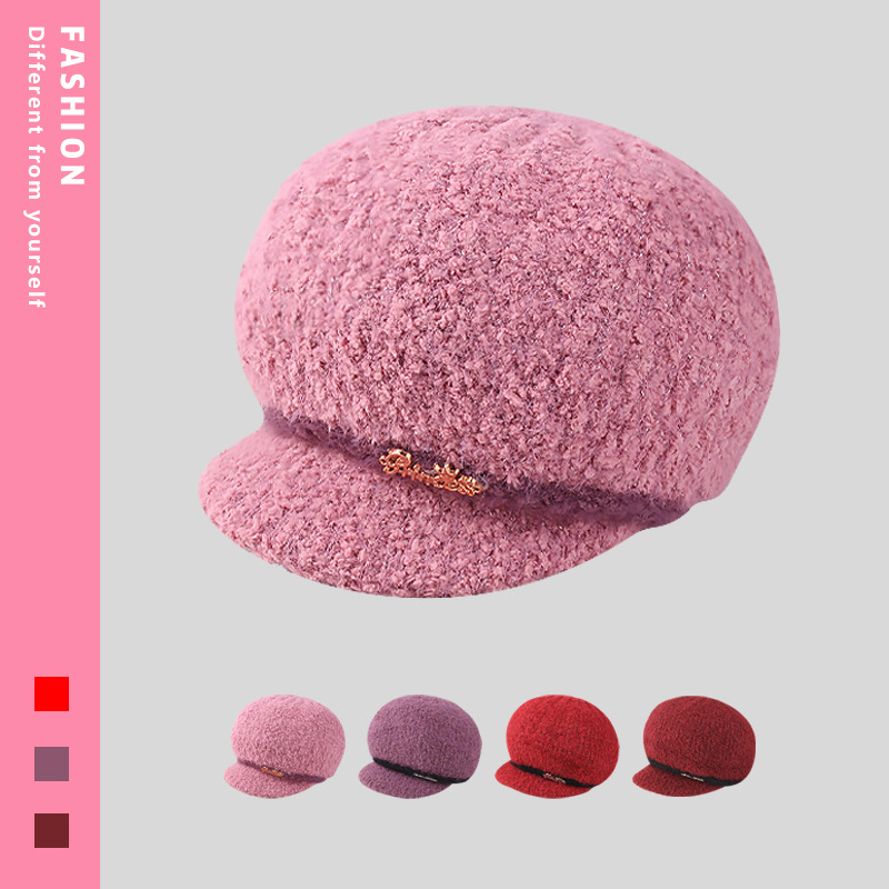 秋冬の女性の帽子の新型ニットベレーの純色のアヒルの舌の帽子の毛糸の帽子とベルベットの保温の冬の帽子のファッションの帽子の冬