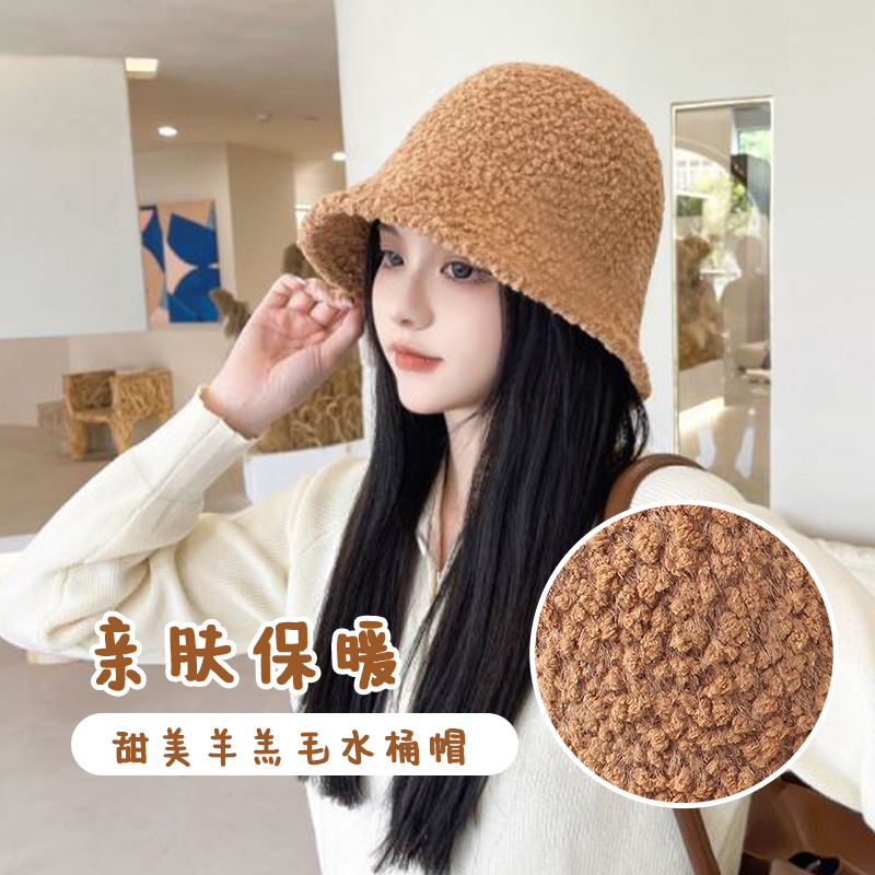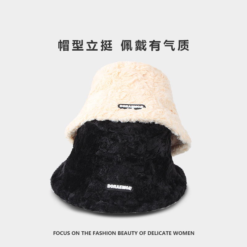 ぬいぐるみ漁師帽子三角標秋冬ins百合韓国保温盆帽女羊小毛耳保護バケツ帽