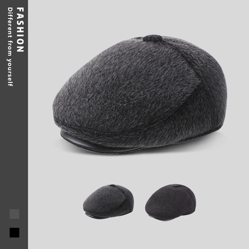 2022新型ミンクの毛を模したハンチングとベルベットの耳保護防寒中高年男性帽子おじいさん帽子ベレー監督帽子
