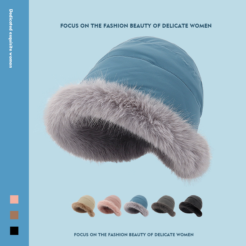 ベルベット帽秋冬ベルベット厚手女性顔小冬自転車保温バケツ帽盆帽潮保護耳包頭帽