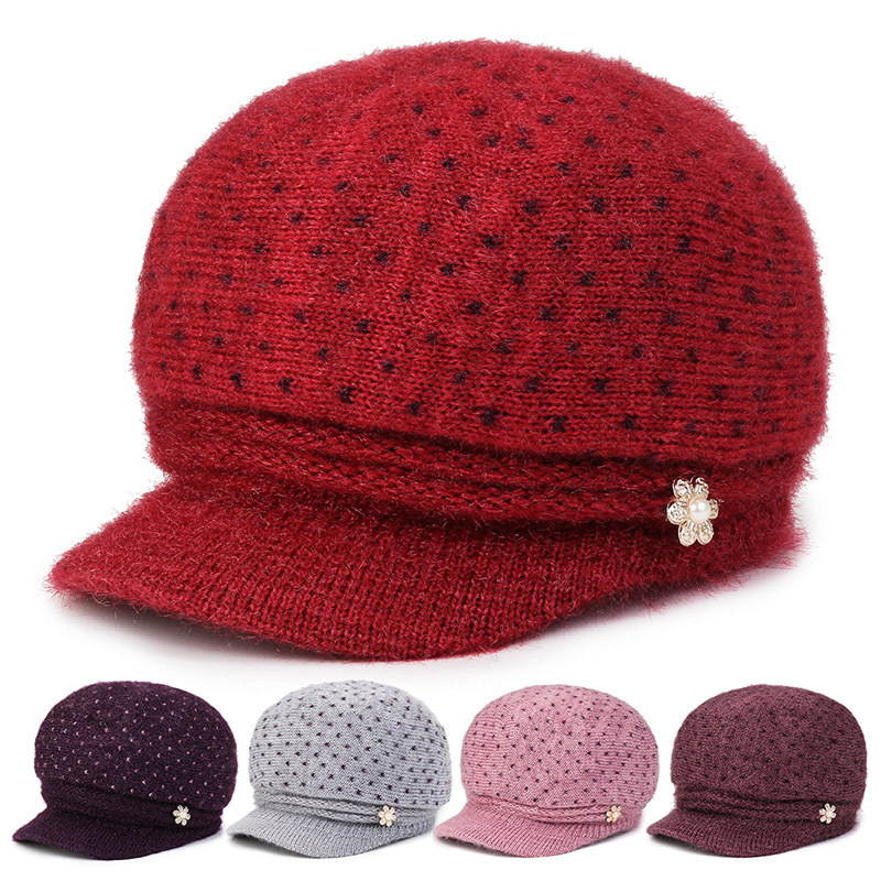 冬の新型中高年帽子女性ニット毛糸帽子女性ベルベット耳保護帽子母祖母帽子