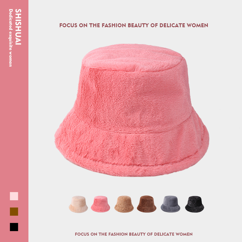 レトロなウサギの毛のバケツの帽子の女性の秋冬の甘くてかわいいぬいぐるみの韓国版の百合の漁師の帽子の保温の厚い盆の帽子