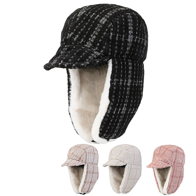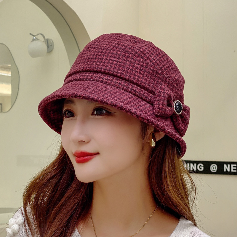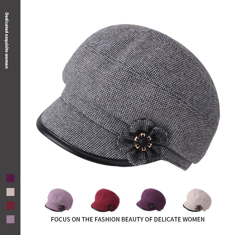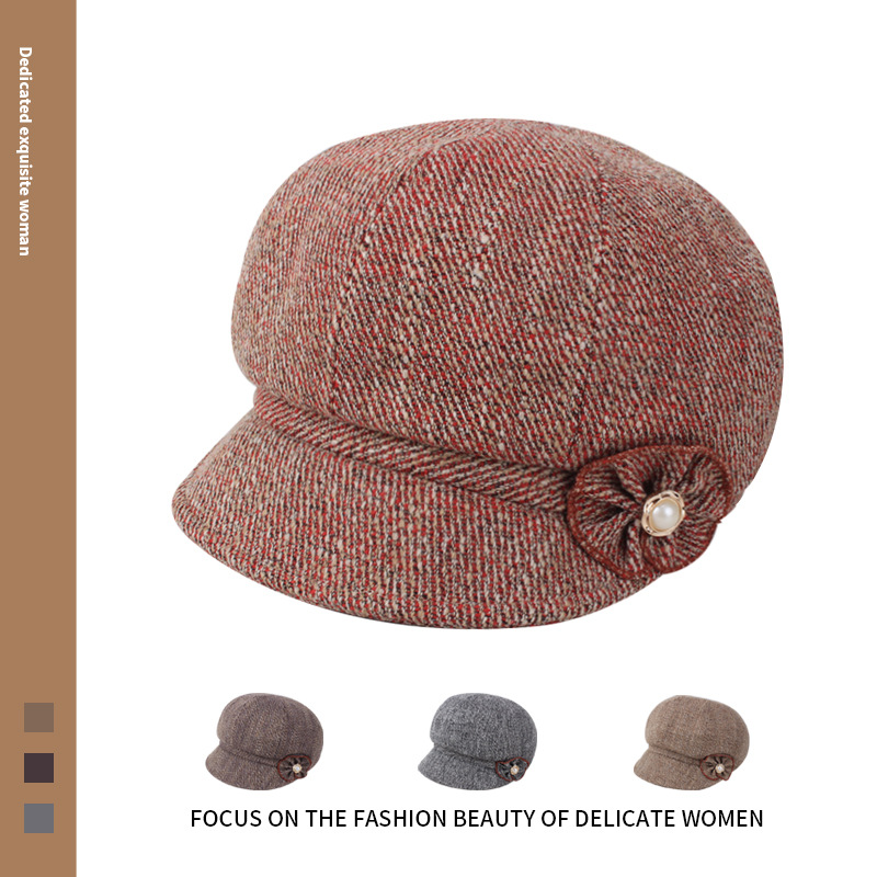 2022新型秋冬ラシャ前進女帽小格花ファッション帽はベレー保暖冬帽子を調節できる