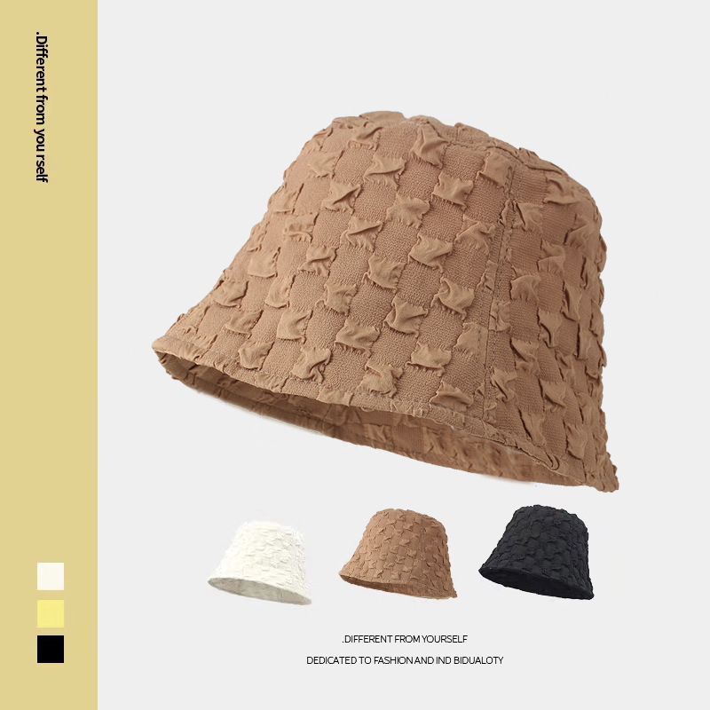 夏のしわの泡の格子の漁師の帽子の子供の夏insの日本の復古のファッションの百合の顔の小さいバケツの帽子
