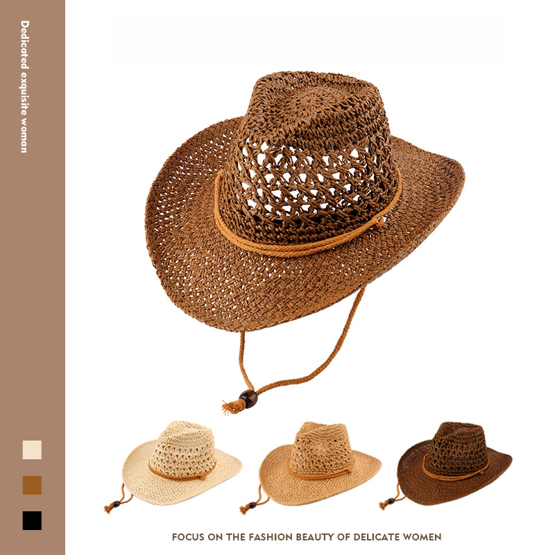 夏の西部のカウボーイの帽子の女性のinsの小さい大衆の復古的な透かし彫りの通気性の日よけの麦わら帽子の海辺の日よけの砂浜の帽子の男