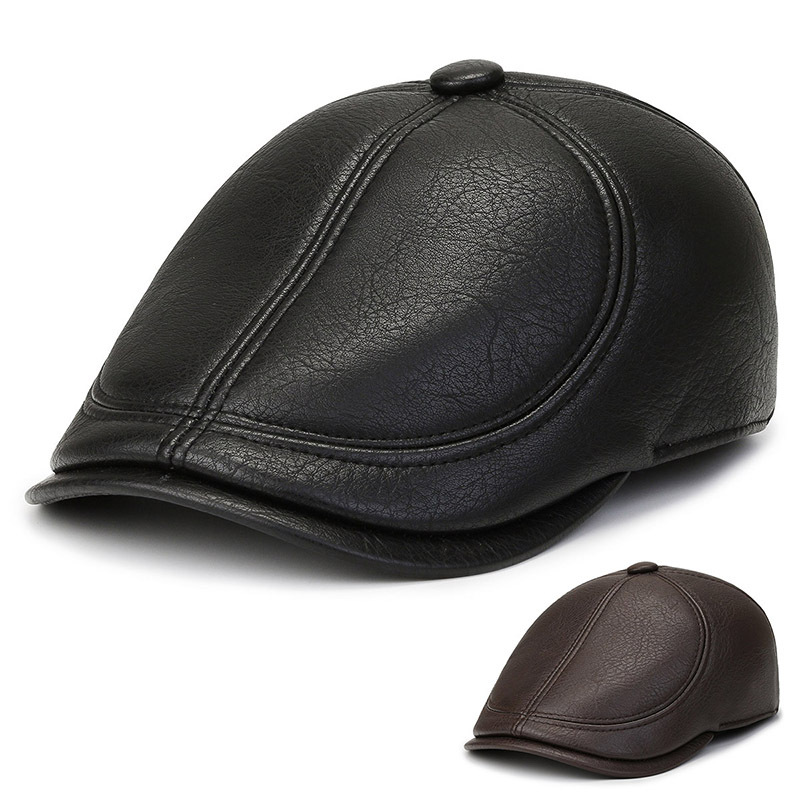 秋の冬のアヒルの舌の帽子の革は耳の中で高齢者の男性の帽子の保温の防寒の老人の帽子のおじいさんの帽子の監督の帽子を持ちます。