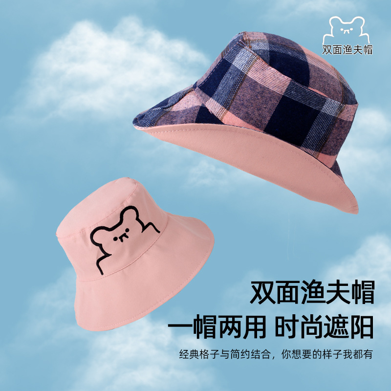 2022新しいソリッドカラーの格子両面漁師キャップ折りたたみ可能な布キャップサンシェード漁師帽子ビーチの女の帽子ベアー