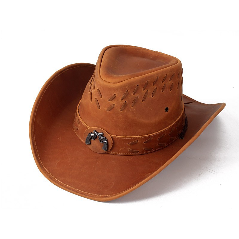 狂馬頭層牛革西部カウボーイ帽真皮男女型騎馬帽夏日焼け止め定型騎士皮帽子