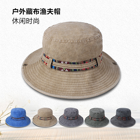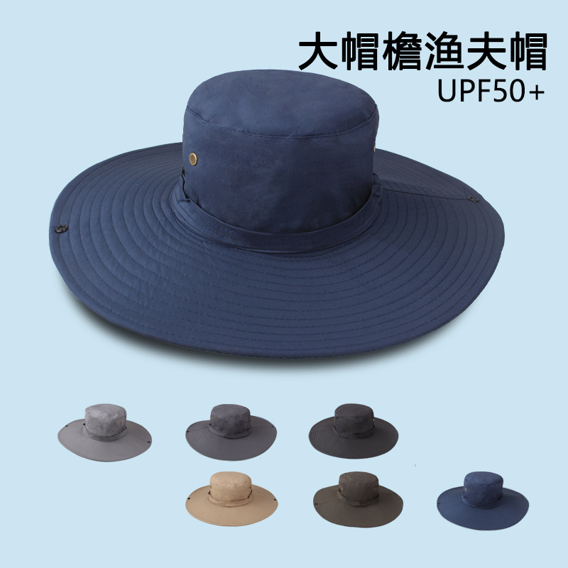 漁師帽男性帽夏の新型アウトドア帽の広いつばの日焼け止め顔の日よけ帽子防風縄帽子男性潮盆帽