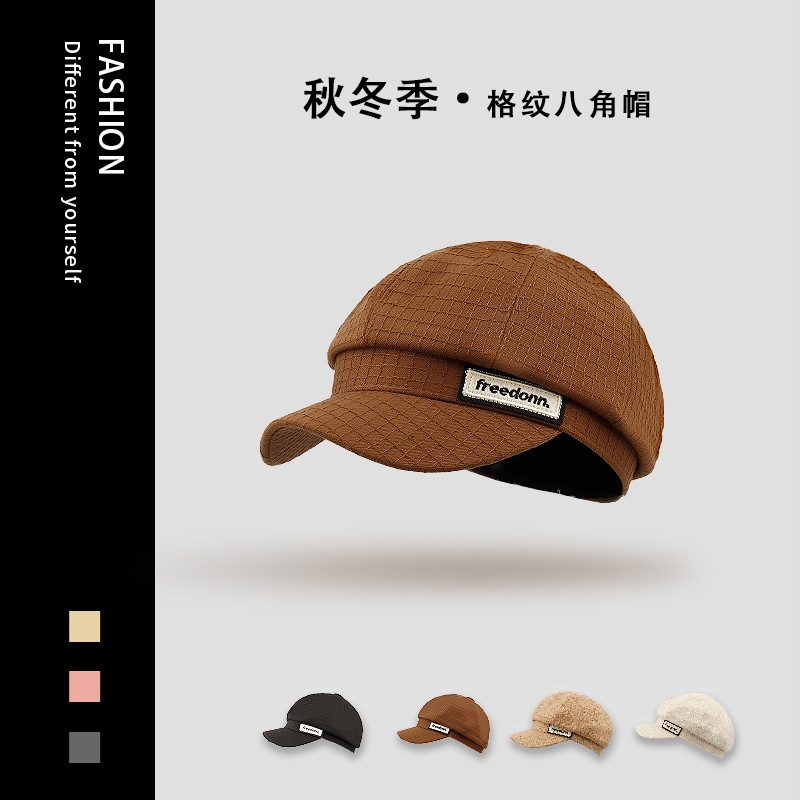日本の新型の顔が小さい黒いベレー帽の女性秋冬文芸復古の八角帽子の大きい頭の周りの画家の帽子の潮