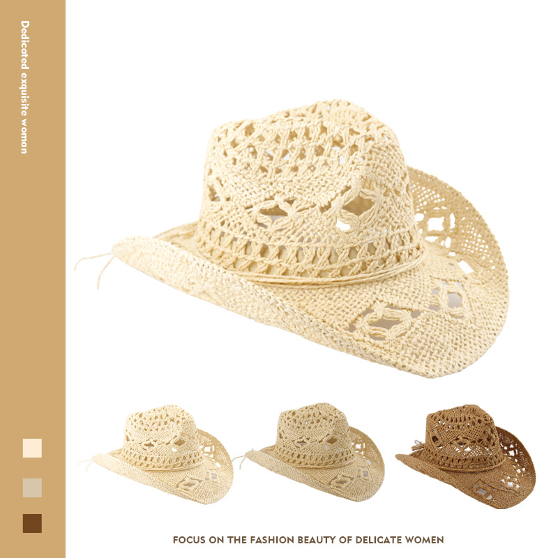 大軒西部カウボーイ帽子男女小衆レトロ純色騎士帽春夏屋外日よけ日焼け止め麦わら帽子