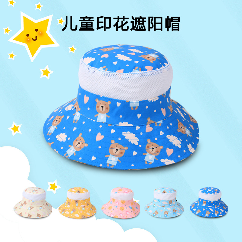 2022新型プリント熊模様ネット付き通気性日よけ帽子日焼け止め日よけ帽子赤ちゃん涼しい帽子漁師帽子