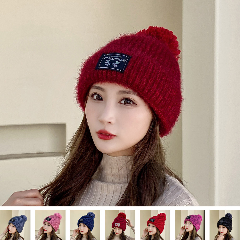 2022新しいニットの女性の帽子の純色のジャカードの毛玉とベルベットのニットの保温の毛糸の帽子の帽子のファッション綿