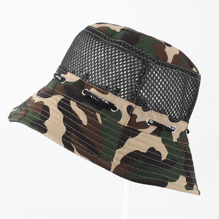 春の夏のメッシュの帽子の迷彩は小さいです。漁師の帽子に沿って折りたたみができます。