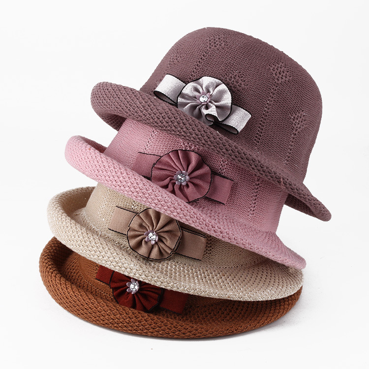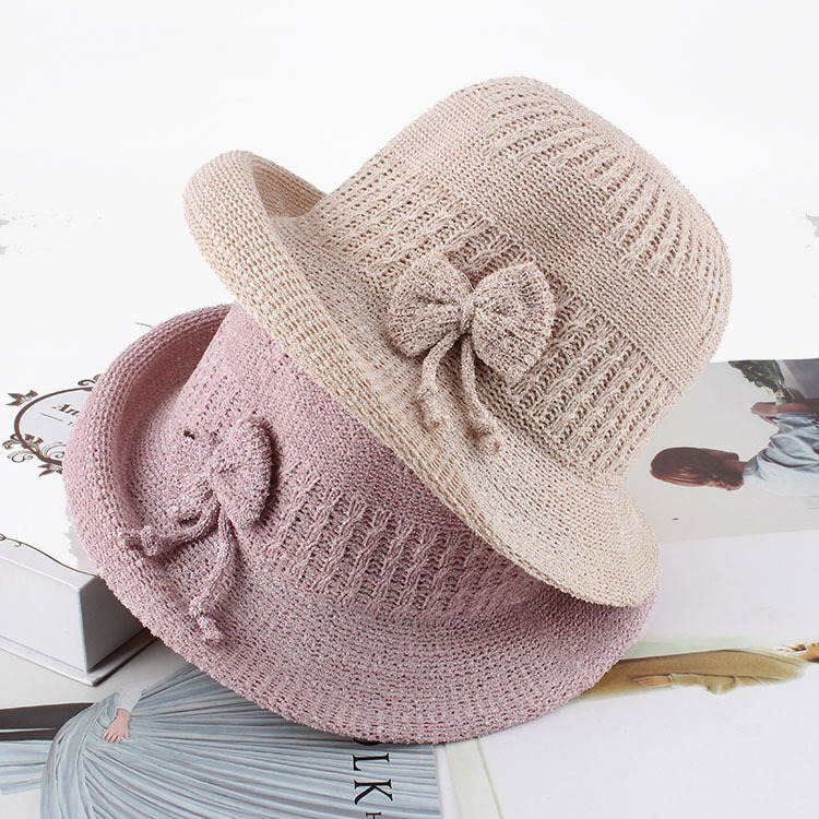 春の夏の女性の帽子の韓国版のファッション的な純色はニットの女性の帽子のドームの帽子に沿って日よけの砂浜の帽子の盆の帽子をかぶせます。