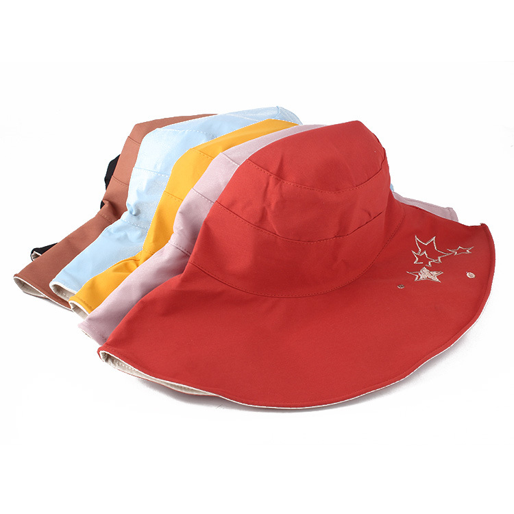 春の夏の女性の帽子韓国版ファッション折り畳み可能な漁師の帽子の純色の刺繍の両面の日よけの帽子のビーチの布の帽子の盆の帽子