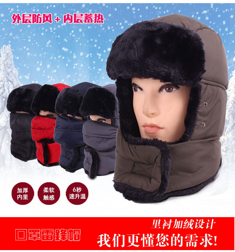 冬には雷鋒帽のアップグレード版を厚くした男性女性の屋外防風帽自転車帽東北帽子保温綿帽