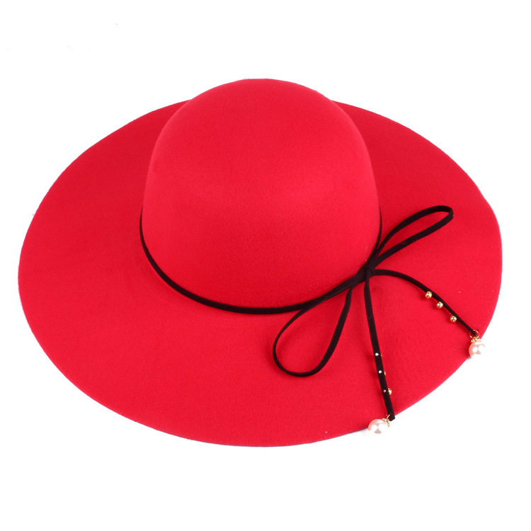 秋の帽子の女性の韓国版のファッションの大きい縁のラシャの帽子は真珠の装飾の女性の広い縁の日よけの帽子の大きい縁の帽子を持ちます。