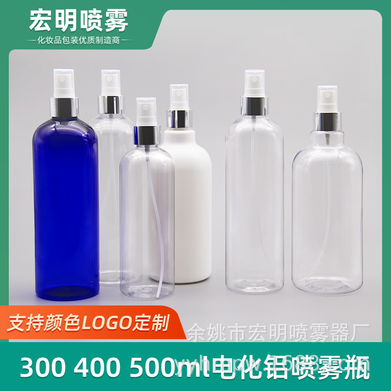 300ml 400ml 500ml電化アルミスプレーボトル丸肩ペットボトルブルークリアミスト化粧水分注
