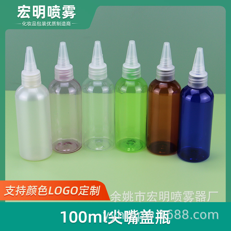 100ml pet透明プラスチックボトルと尖口蓋電送水キャップインク油スプレーボトル乳液ボトル