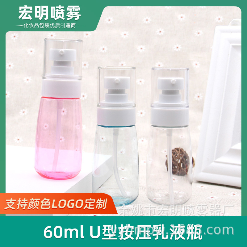 60mlupg透明プラスチックローションボトル旅行分注ローションボトル厚いボトル厚い底u型化粧品