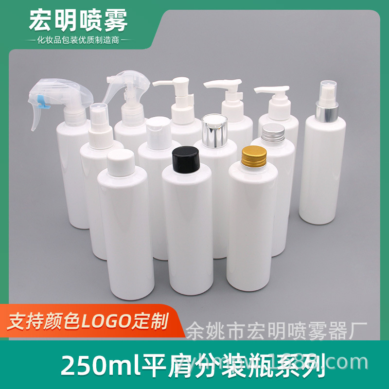 250ml平肩の白いペットボトルのスプレーボトル、小さなスプレーボトルのローションボトルの液体ボトルの空のボトルの超微細ミスト